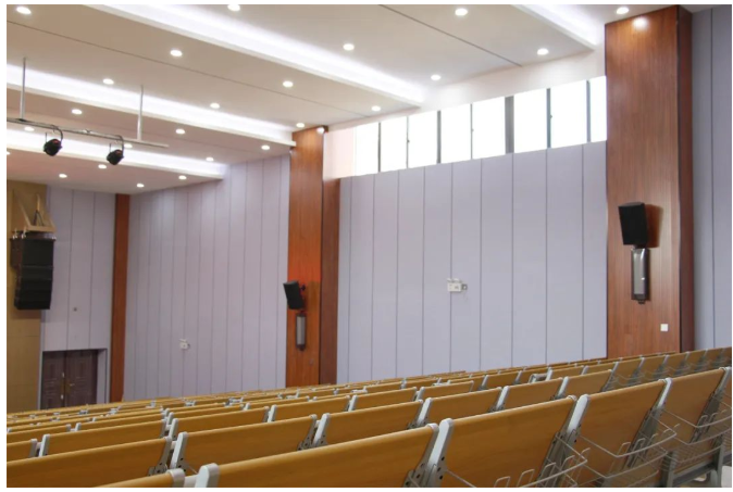 在会议厅这里,选用了2只SP12作为主扩声音箱,6只Impulse8作为补声音箱,加上一台MA1410-F调音台,满足各种会议进行所需的声音要求。
