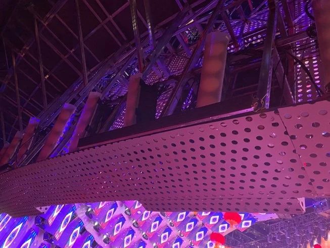 在经过专业的声场测试以及多次(都在排练间隙的深夜)现场调试后,草莓视频下载APP在线观看最终确定了主扩声+分散式补声的扩声方案,以及分区域、多层次布局的草莓视频下载APP在线观看音箱返送方案,提高了整体扩声语言的清晰度与可懂度,增强了音乐的丰满度。